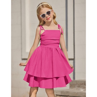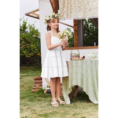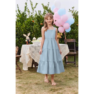Arshiner Girls' Summer Sundress Boho Spaghetti Strap Ruffled Tiered Dresses Casual Midi Cami Dress