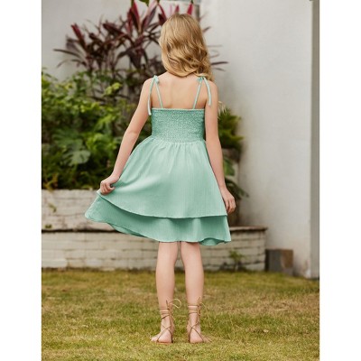 Arshiner Girls Summer Spaghetti Strap Dresses Flowy Tiered Ruched Smocked Back Casual Beach Midi Sundress