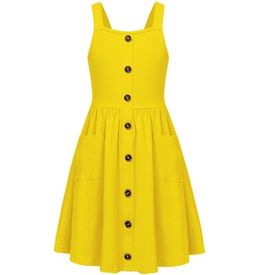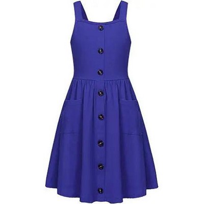 Arshiner Girl's Spaghetti Strap Button Down Midi Sleeveless Summer Casual Sundress A-line Dress with Pockets