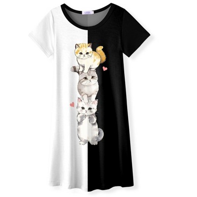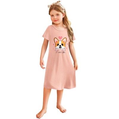 Arshiner Girls Nightgowns Summer Soft Cute Cartoon Print Pajama Sleep Dress for Kids 4-12 Years