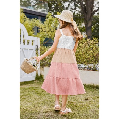 Arshiner Girl's Sundresses Summer Boho Strap Tiered Cami Maxi Dresses with Pockets