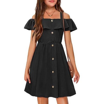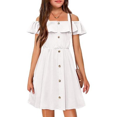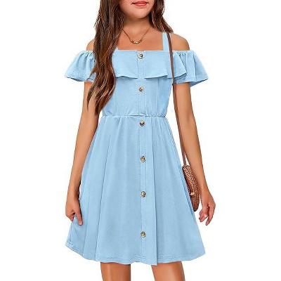 Arshiner Girls Dresses Summer Spaghetti Strap Cold Shoulder Ruffle Button Down A Line Dresses