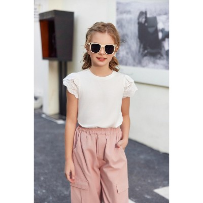 Arshiner Girls T Shirts Lace Petal Short Sleeves Kids Crewneck Casual Blouse Summer Tops Tees