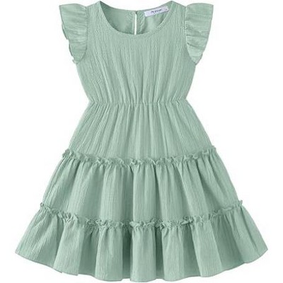 Arshiner Toddler Girls Dress Ruffle Sleeveless Tiered Swing Twirly Dresses Cute Summer Beach Sundress with Pocket for 1-6T-Ice Green-110