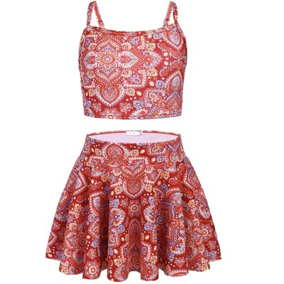 Arshiner Girls 3 Piece Swimsuit for Teen Girl Tankini Swimsuits Bathing Suit Beach Floral Bikini Swimwear with Skirt