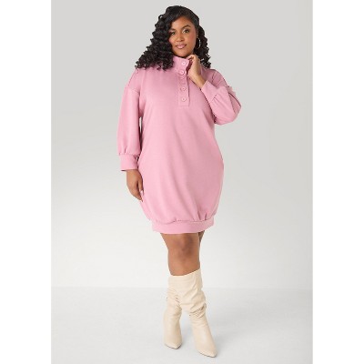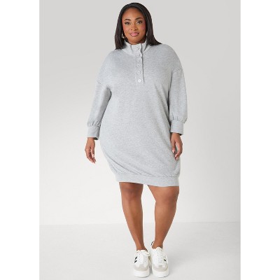 Women's Button Front Sweatshirt Dress - Ashley Stewart