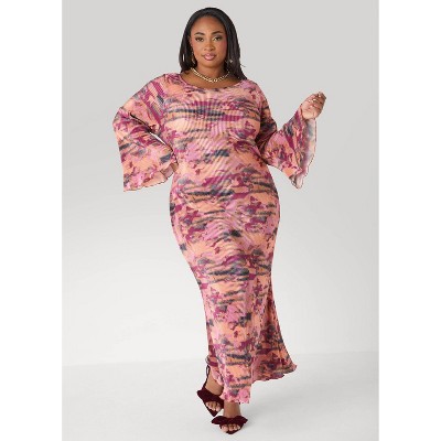 Women's Plisse Printed Maxi Dress - Ashley Stewart