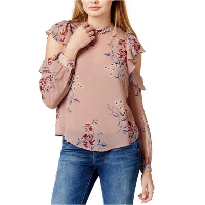 ASTR The Label Womens Chantelle Sheer Floral Knit Blouse