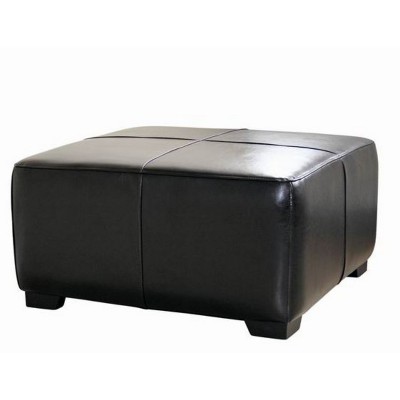 Full Leather Square Ottoman Footstool Black - Baxton Studio: Modern Upholstered, Wood Frame, No Assembly Required
