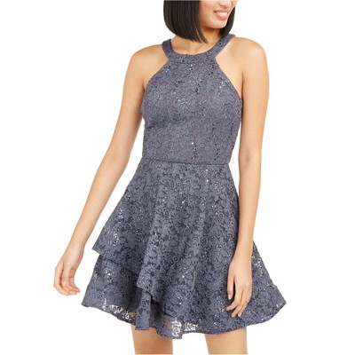 BCX Womens Embroidered Floral Fit & Flare Dress