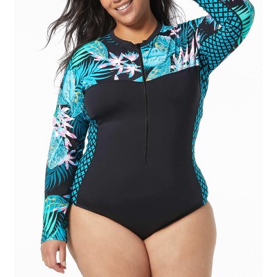 Beach House Sport Plus Size Sculpt Long Sleeve Zip Front One Piece Swimsuit