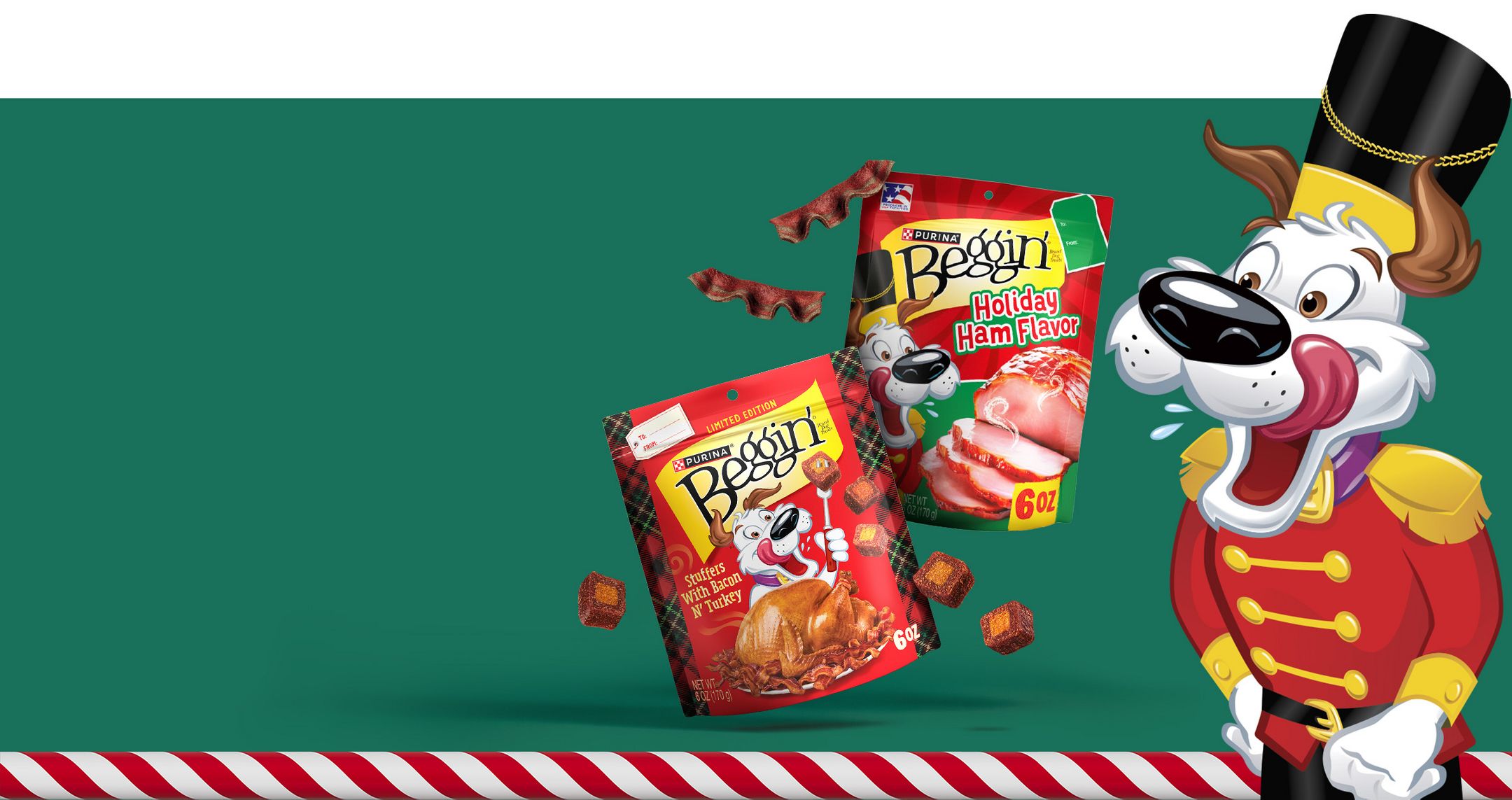 Shop Beggin’ dog treats.