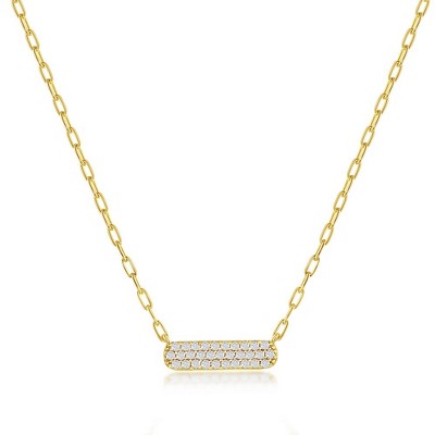 Bella Silver Sterling Silver Small CZ Bar Necklace - Gold Plated - Gold - 16+2 Inch