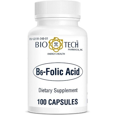 Bio-Tech Pharmacal Vitamin B6 & Folic Acid Dietary Supplement – 100 Capsules