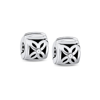 Bling Jewelry Set of 2 Floral Daisy Clasp Spacer Charm Oxidized Sterling Silver for European Bracelet