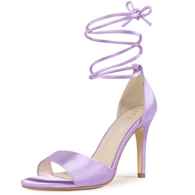 BLISSFUL STEP Women's Satin Lace Up Open Toe Stiletto Heel Sandals