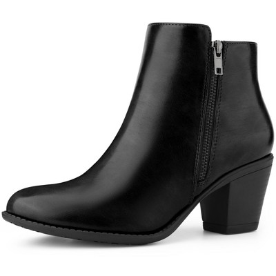 BLISSFUL STEP Women's Low Chunky Heel Side Zipper Booties