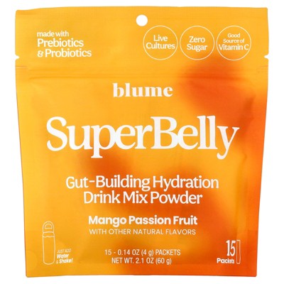 Blume SuperBelly, Gut-Building Hydration Drink Mix Powder, Mango Passion Fruit, 15 Packets, 0.14 oz (4 g) Each