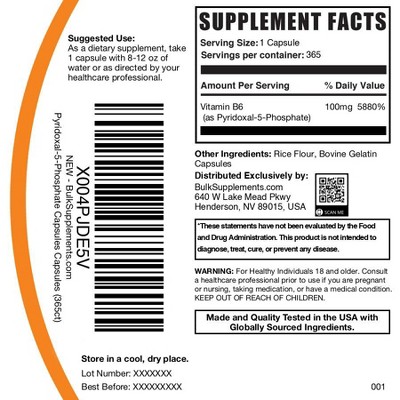 BulkSuppelements Pyridoxal-5-Phosphate (P5P) Capsules