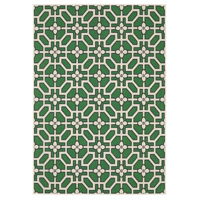 Captiv8e Designs Hilo Geometric Tile Motif Ivory/Green Indoor/Outdoor Rug