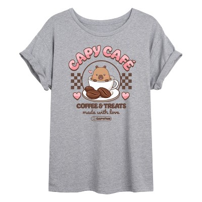Women's - CapyFun - Capy Cafe Oversized Graphic T-Shirt