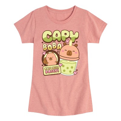 Girls' - CapyFun - Capy Boba Fitted Short Sleeve Graphic T-Shirt