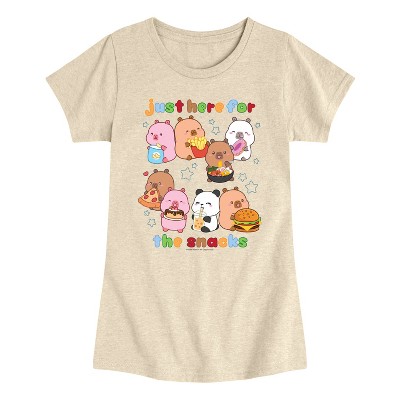 Girls' - CapyFun - Just Here for the Snacks Fitted Short Sleeve Graphic T-Shirt