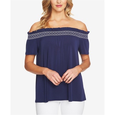 CeCe Womens Smocked Off the Shoulder Blouse