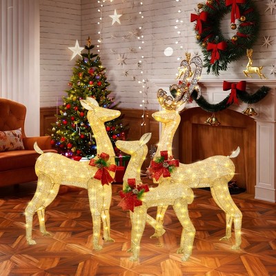 Celebalcony 3-Piece LED Lighted Christmas Deer Family Outdoor Yard Decorations,3D Super Large Christmas Reindeer Decor for Patio, Lawn & Garden