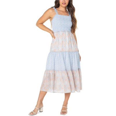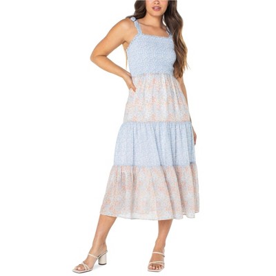 Celebrity Pink Womens Twin Printed Smocked Floral Midi Dress