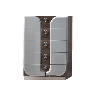 Chintaly Imports,2 Drawers Nightstand, Zebra Wood Grain/Gloss Gray