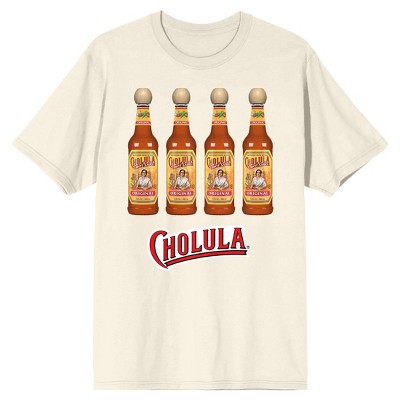 Cholula Hot Sauce Bottles Adult Sand Crew Neck Short Sleeve T-shirt