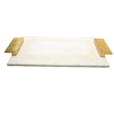 Classic Touch White Marble Challah Tray with Embossed Gold Handles