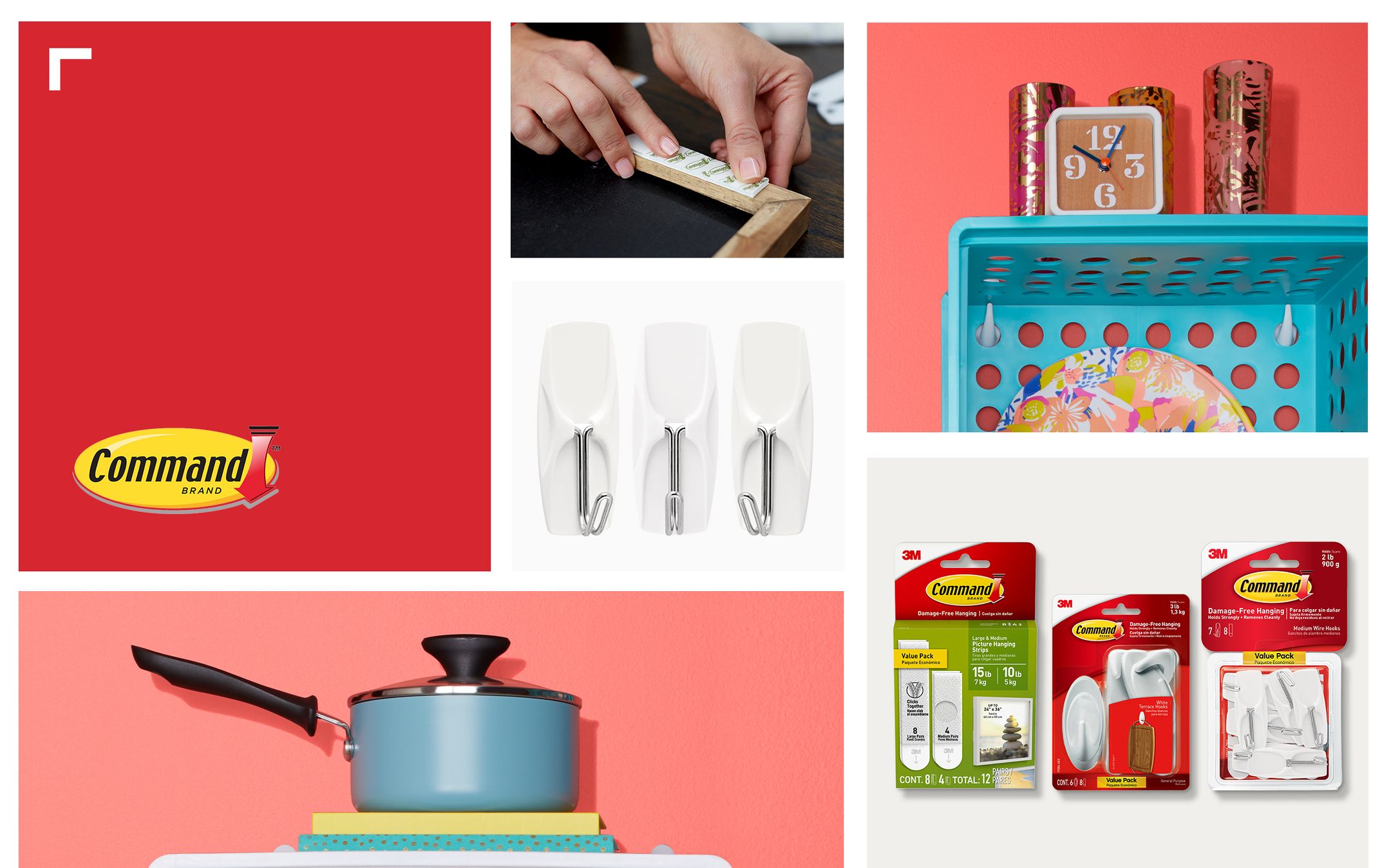 - Command 6pk Medium Designer Hooks White: Adhesive Hanging Hooks, 6 Pack, 3 lb Capacity, Plastic