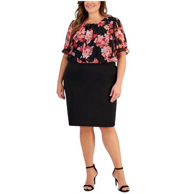 Connected Apparel Womens Chiffon Popover Floral Sheath Dress
