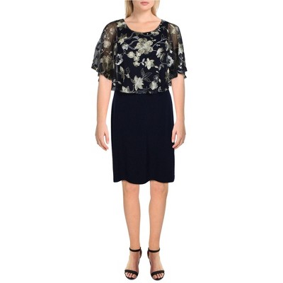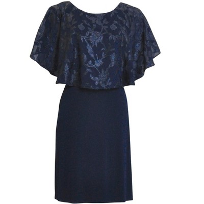 Connected Apparel Womens Cape Overlay Cocktail Dress