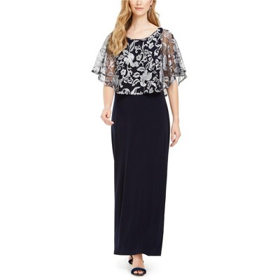 Connected Apparel Womens Embroidered Overlay Gown Dress