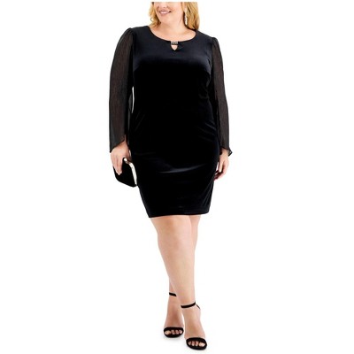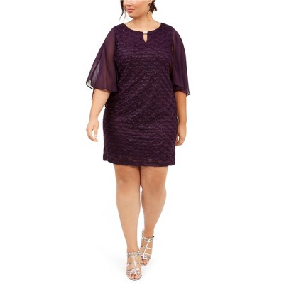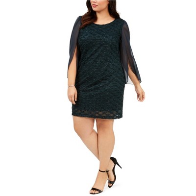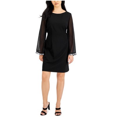 Connected Apparel Womens Sheer Sequin Trim Sleeve Sheath Dress