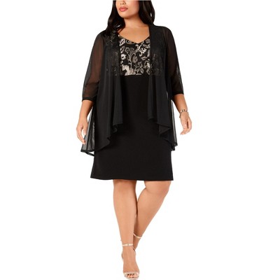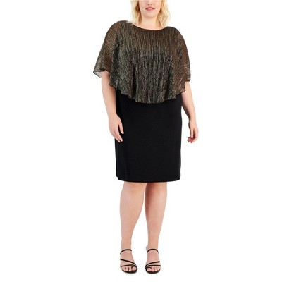 Connected Apparel Womens Metallic Capelet Floral Shift Dress
