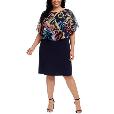 Connected Apparel Womens Capelet Floral Shift Dress