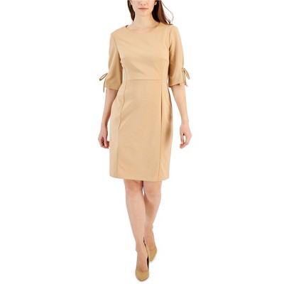 Connected Apparel Womens Tie-Sleeve Slit Back Sheath Dress