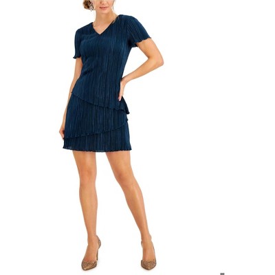 Connected Apparel Womens Pleated Tiered Sheath Dress