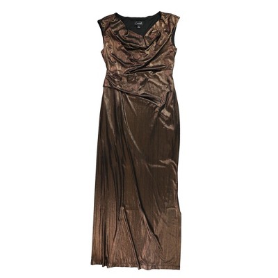 Connected Apparel Womens Metallic Cowl Neck Gown Dress