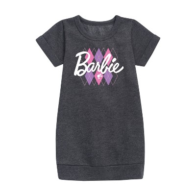 Girls' - Barbie - Argyle Graphic Short Sleeve Fleece Dress