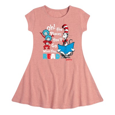 Girls' - Dr. Seuss - Oh Places Youll Go When You Read Fit & Flair Cap Sleeve Graphic Dress