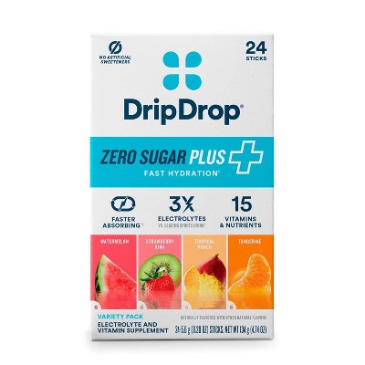 DripDrop Zero Sugar Plus Variety Pack Dietary Supplement Powder - 24ct