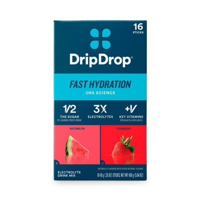 DripDrop Fast Variety Dietary Supplement Powder - Watermelon & Strawberry - 16ct