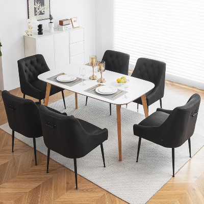 DYHOME Modern Dining Chairs Set of 6, Mid Century Kitchen Dining Chairs with 5.12” Cushions, Upholstered Dining Chairs with Back Pull Rod