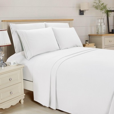 Elegant Comfort Essential 4-Piece 3-Line Embroidery Sheet Set, Soft as a Hotel Premium Quality, Moody Shades