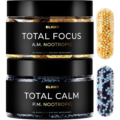 ELMNT Total Focus AM & PM Nootropic, For Memory & Focus, Dietary Supplement, 50 Capsules each - 2 PK